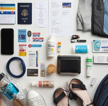 Extras: Pajamas, swimwear, foldable tote for souvenirs, universal adapter.
